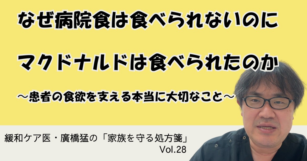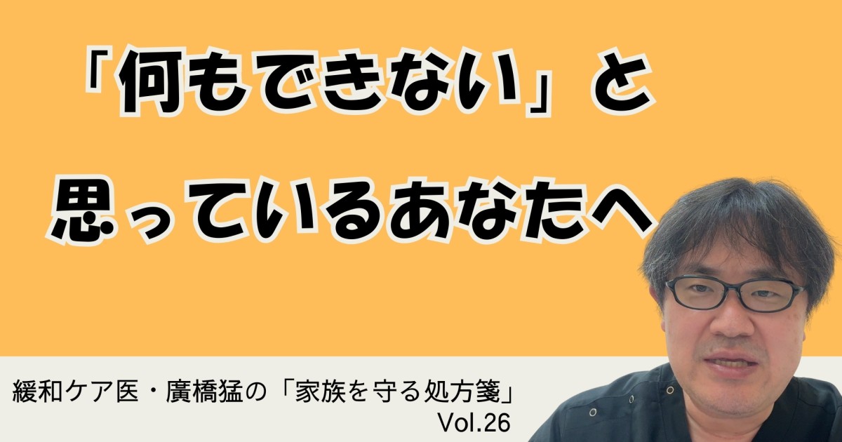 皆さん、こんにちは。緩和ケア医の廣橋猛です。